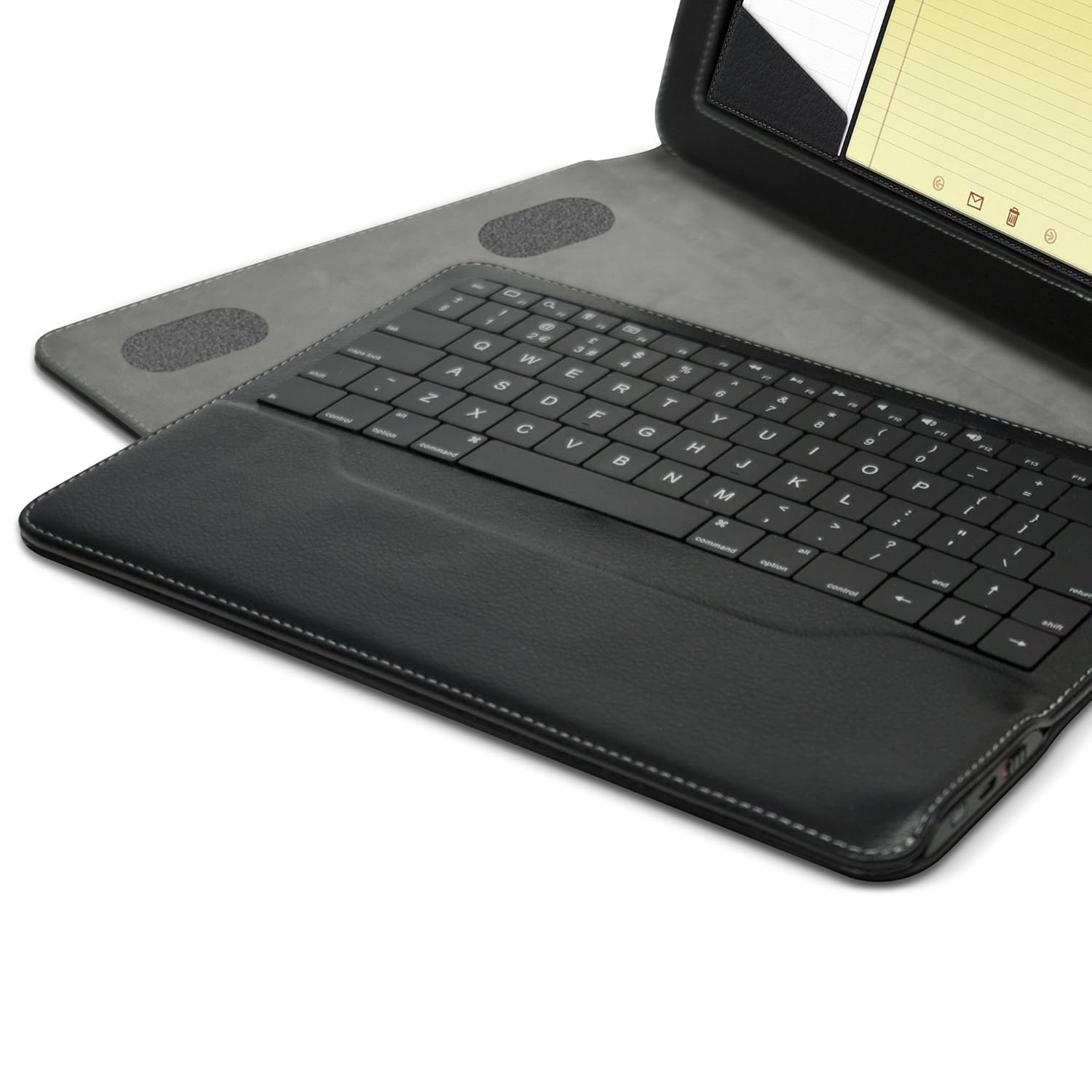 The Bluetooth Portfolio case allows me to take out my Galaxy Tab at any time, and start writing and navigating my tablet while it’s resting in an upright position identical to a laptop. The sleek, leather case has a small leg on the back that snaps off and props the tablet up to an angle that is ideal for reading and writing. And if you don’t want to use the tablet as a laptop-style device, just fold the keyboard back and it sits on your lap or in your hands just like a tablet normally would. It offers the complete package for anyone trying to get something done on their Galaxy Tab or iPad.